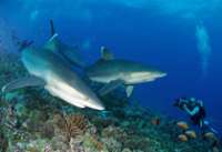 Qui dit passe tourmentée dit forcément passage de « gros ». Par courant rentrant, les requins gris se font ventiler dans le courant. Largués dans le bleu côté océan, les plongeurs dérivent dans la passe, à la même vitesse que les squales. Barracudas, carangues, napoléons font partie du spectacle.
