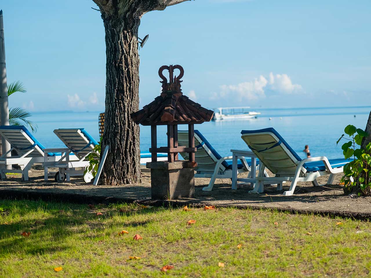 Devant l’hôtel, vous pourrez déjà goûter aux plaisirs de la randonnée palmée. Vous pourrez notamment explorer une immense structure de récifs artificiels qui regorgent de vie. Pour aller un peu plus loin, le centre de plongée Karang Divers est situé dans l’hôtel avec une autre base à deux minutes à pied par la plage. Il propose des sorties jusqu’aux célèbres sites de Pemuteran et de Menjangan, en sortie dédiée ou avec des plongeurs.