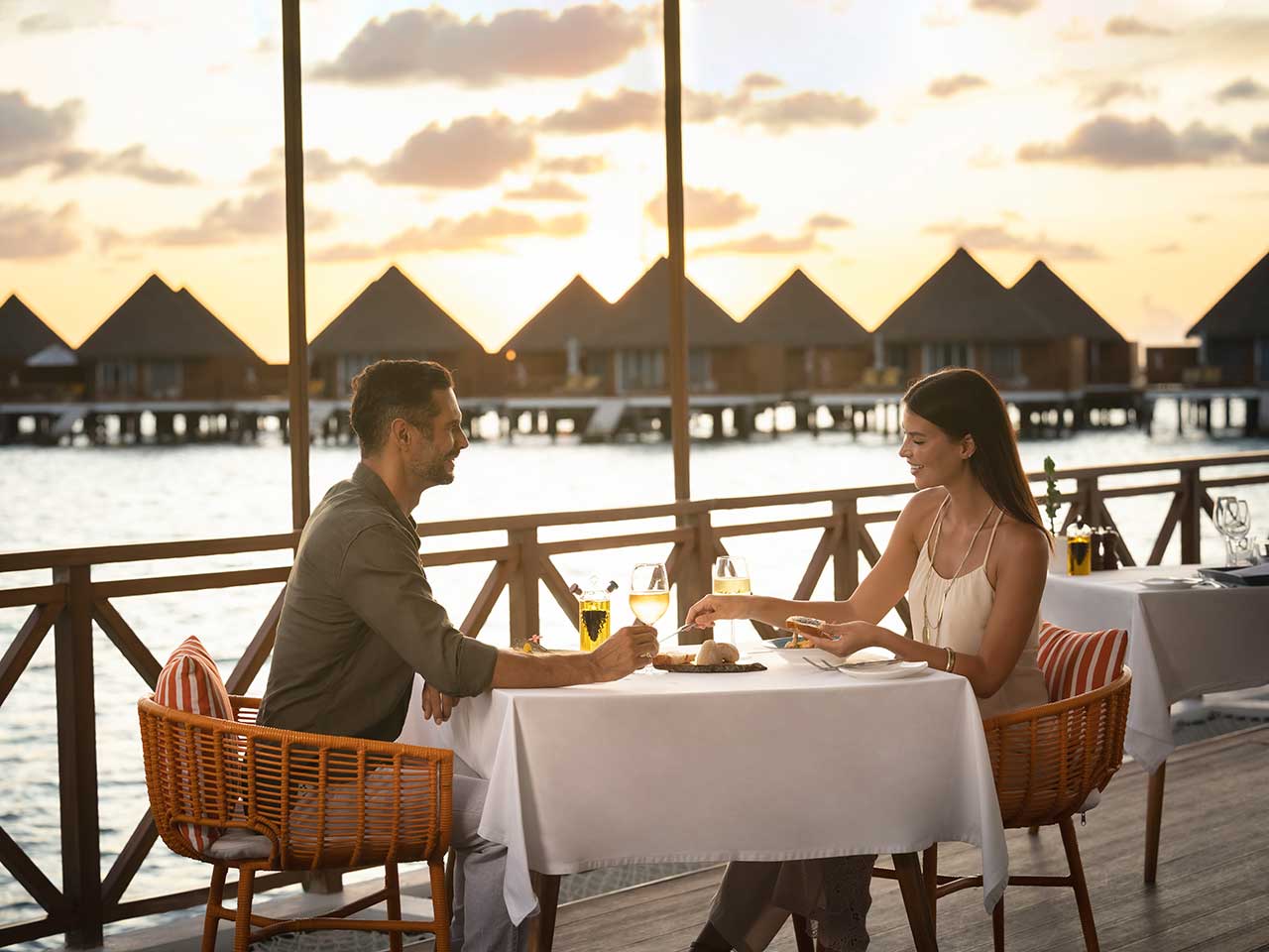 Pour une occasion spéciale, l’hôtel pourra aussi vous organiser un dîner sur la plage, un petit-déjeuner flottant, où même un repas servi directement dans votre villa, à la demande.