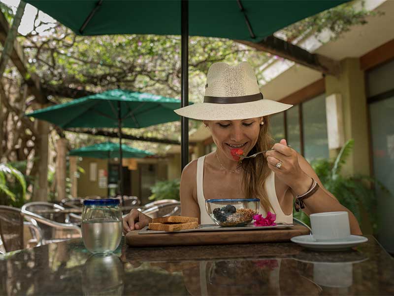 Chaque matin, installez-vous sur l’une des tables extérieures pour profiter de votre petit-déjeuner inclus.