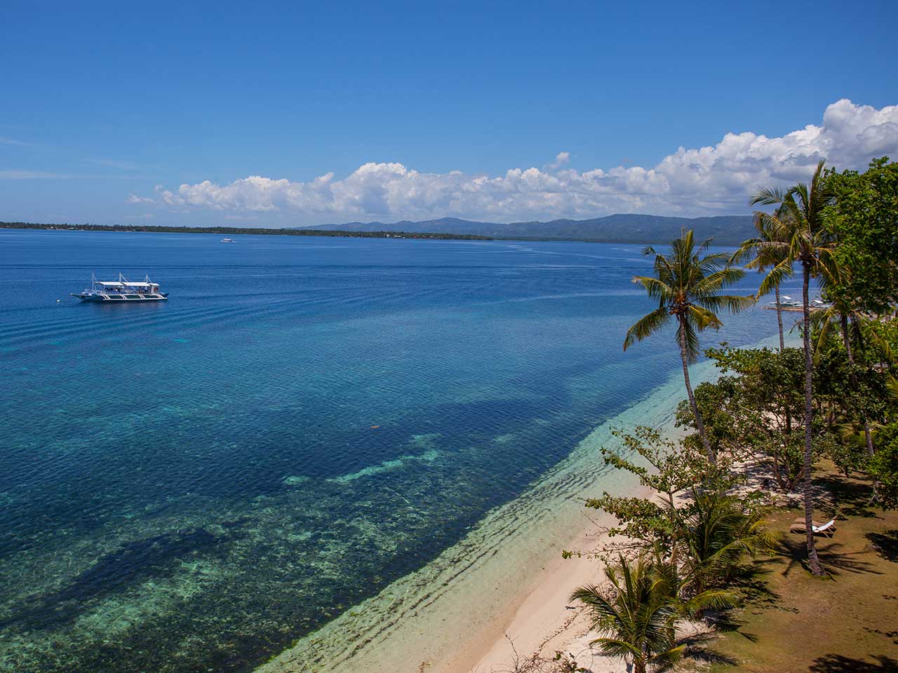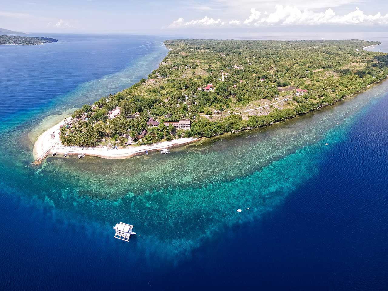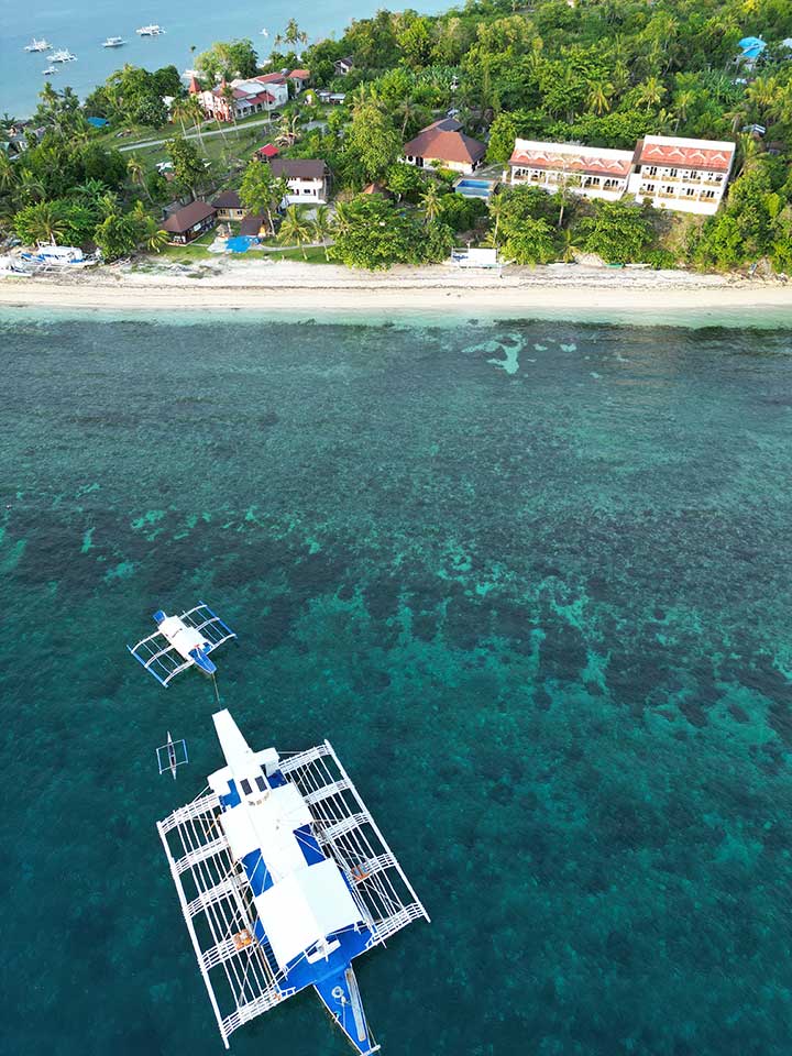 L’hôtel Pura Vida Beach & Dive Resort est situé tout au bout de la petite île de Cabilao, sur une plage de sable blanc bordée d’une rangée de palmiers. L’île tout entière est entourée d’un tombant profond aux parois abruptes. Cabilao est une pépite qui a su garder un côté sauvage et qui reste en dehors des circuits touristiques, bien qu’elle soit au cœur de la région des Visayas. La plage privée de l’hôtel est sans conteste la plus belle de l’île. L’hôtel est simple et charmant, à l’atmosphère reposante.