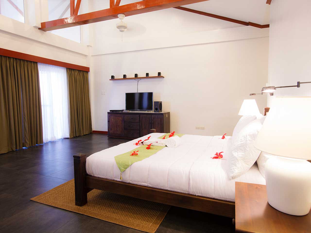 Les 2 Suites disposent d’un lit king-size. L’une d’entre elles est située au niveau de la plage (Beach Front), la seconde (Cliff Side) est en hauteur et en retrait.