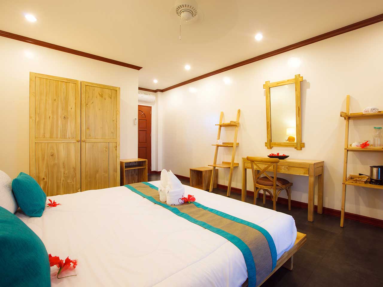 Les 12 Cliff Deluxe Room sont en retrait et en hauteur, dans un bâtiment à deux niveaux d’où la vue est magnifique tout au long de la journée. Elles disposent de deux lits simples.