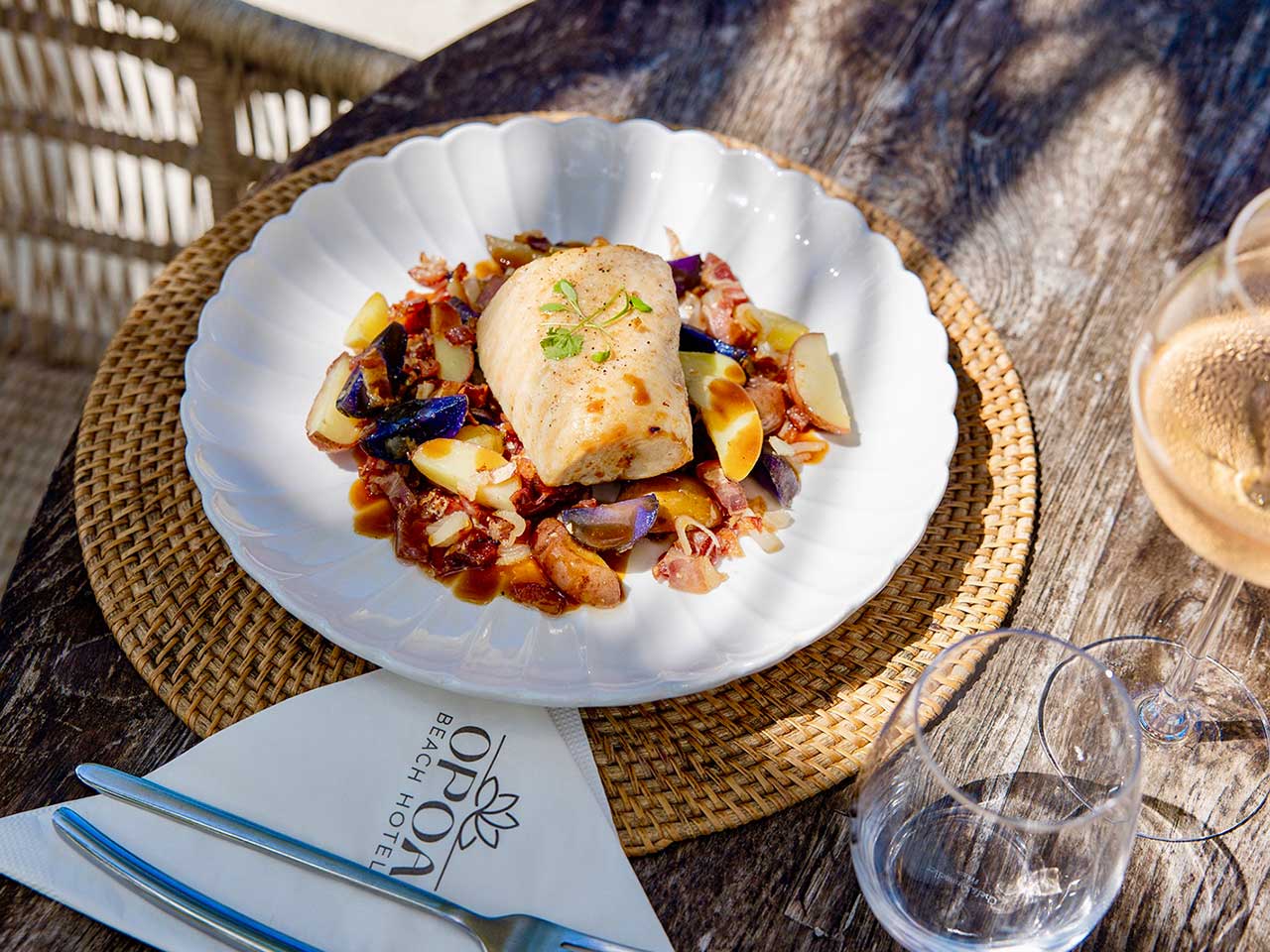 Le restaurant de l’Opoa Beach Hotel fait face à la mer et propose une cuisine digne des grandes tables. Dirigée par Lorenza, l’équipe de cuisine se plie en quatre pour vous proposer une cuisine faite maison saine et inventive, à partir de produits locaux frais, et mettant à l’honneur de délicieux produits de la mer, typiquement polynésiens. Il est ouvert pour le déjeuner et le dîner.
