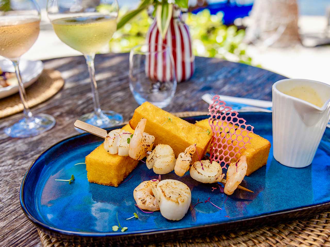 Le Beach Bar propose quant à lui une sélection de rhums arrangés et de cocktails sélectionnés, aux parfums des fruits de la Polynésie. Détendez-vous les pieds dans le sable, au son du ukulélé !
