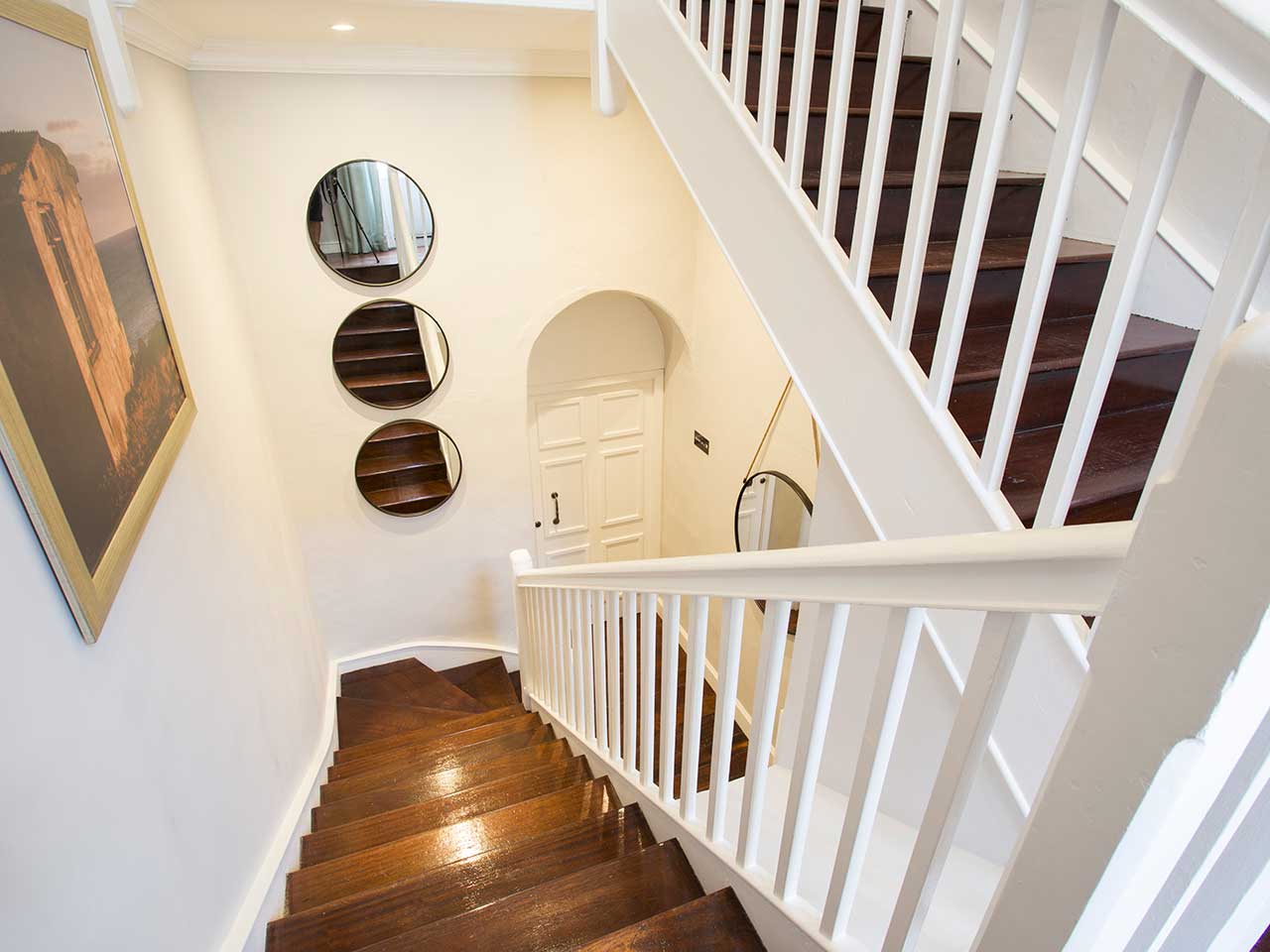 Côté rue, le bâti d’origine contient les chambres dites historiques, avec parquet en teck et iroko, de grandes fenêtres et 4 m de hauteur sous plafond.