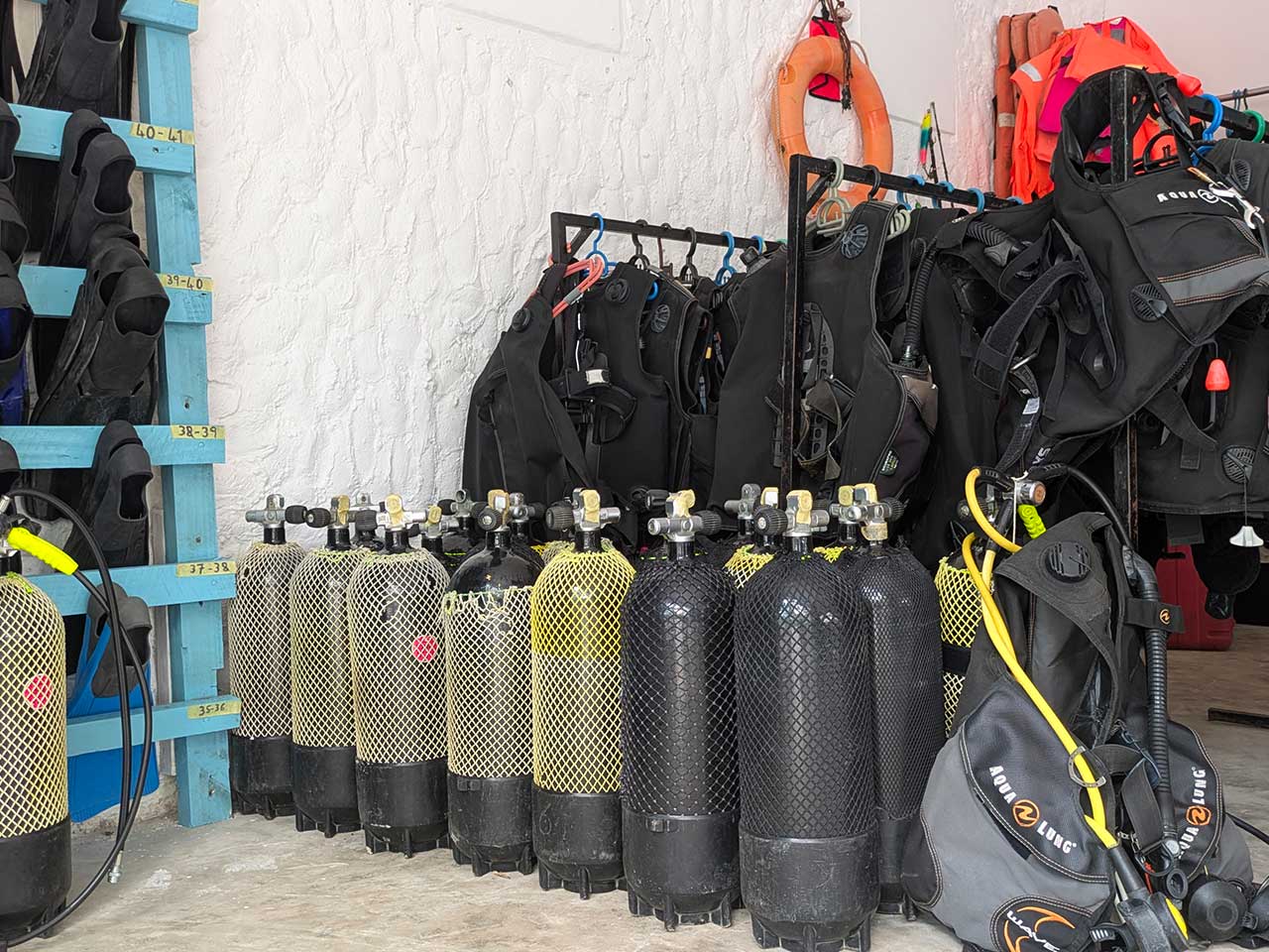 - un forfait de 10 plongées avec l'équipement complet,